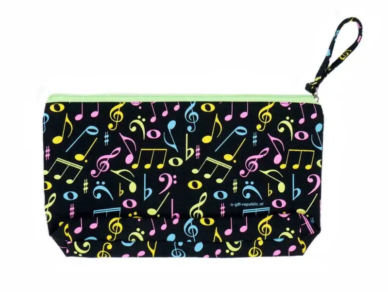 Ale je pennen en potloden die je nodig hebt om te schrijven kun je bewaren in deze etui met leuk gekleurde muziektekens.