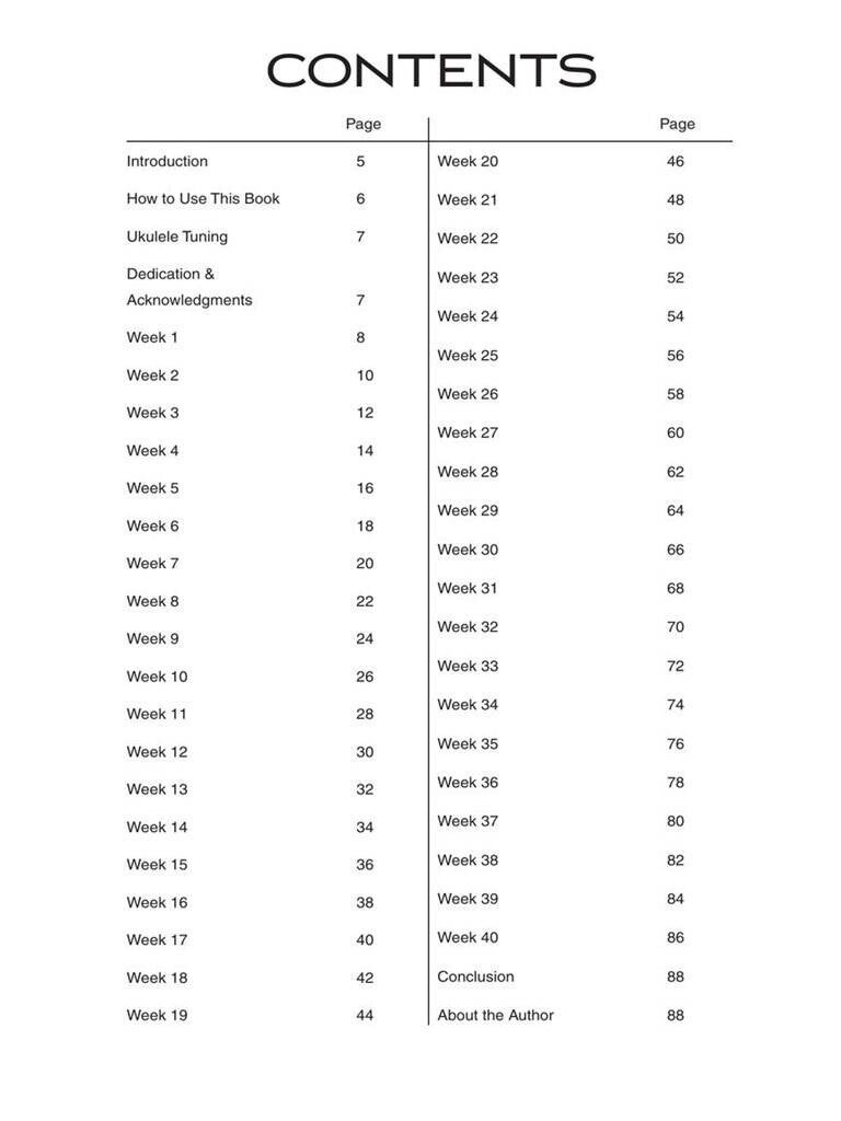 - 40 weken durend trainingsprogramma met één lik per dag voor het ontwikkelen, verbeteren en onderhouden van je ukeleletechniek.