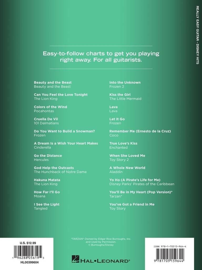 Disney Hits - Really Easy Guitar Album Hal Leonard